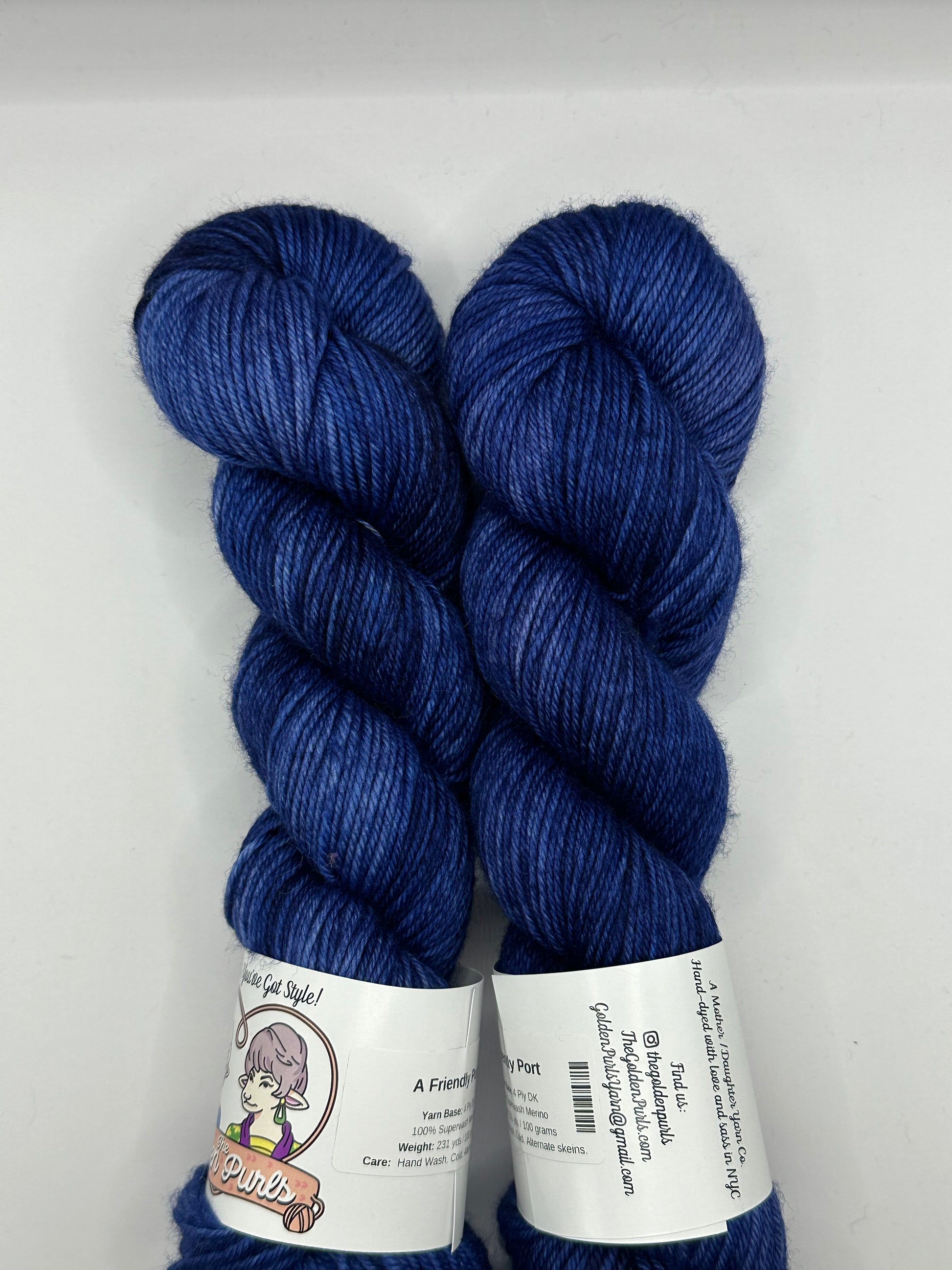A solid punchy navy blue yarn inspired by some of Blanche's patriotic escapades.
