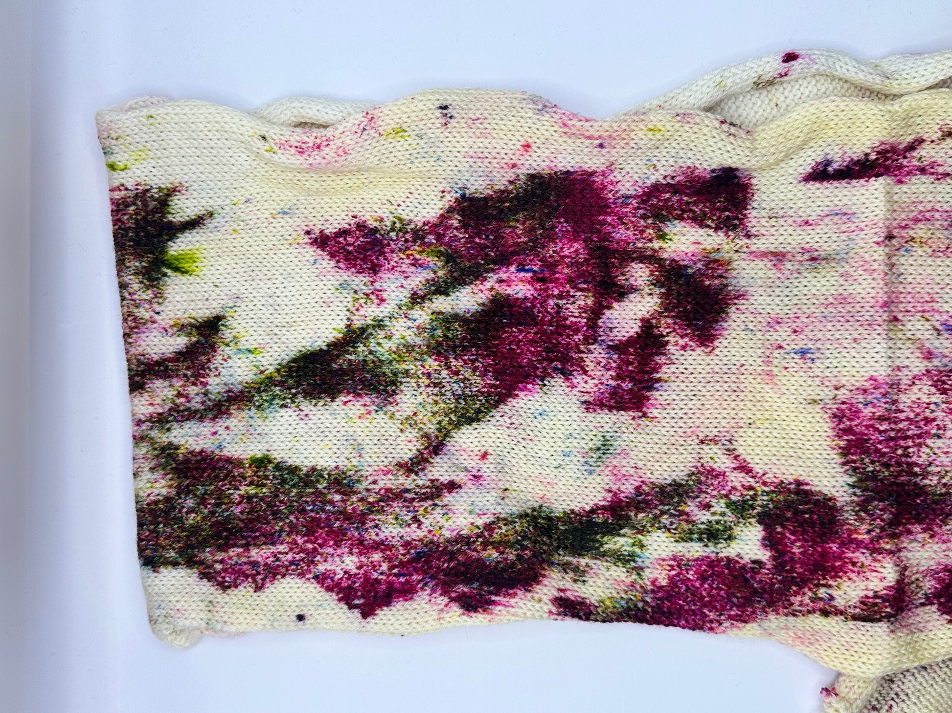 A tonal cream speckled with pops of bright pinks, greens, and hints of blue inspired by Sophia's busier-than-you-think social life and volunteer work. This is a sock blank - which you unravel to knit with.