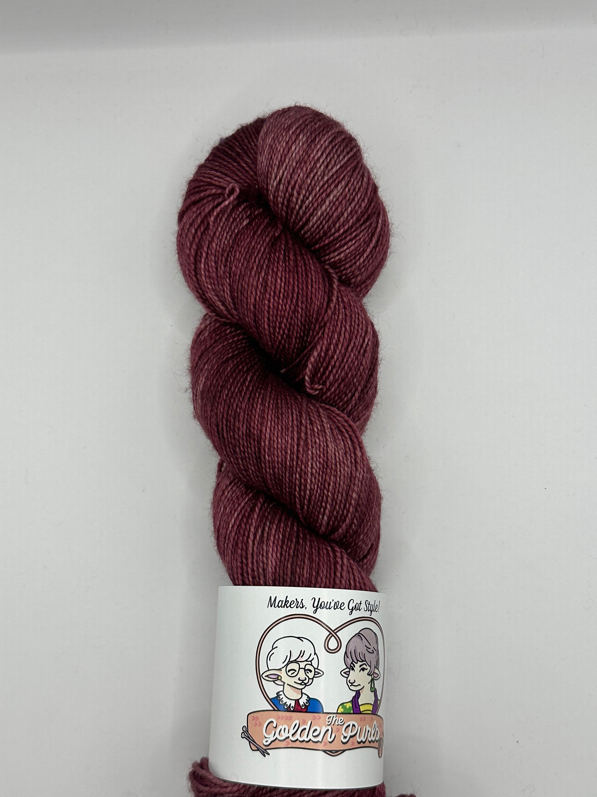 A semi-solid burgundy-antique mauve color with the slightest streaks of taupe inspired by Blanche's delicate demeanor... or at least the delicate demeanor she claims to have.