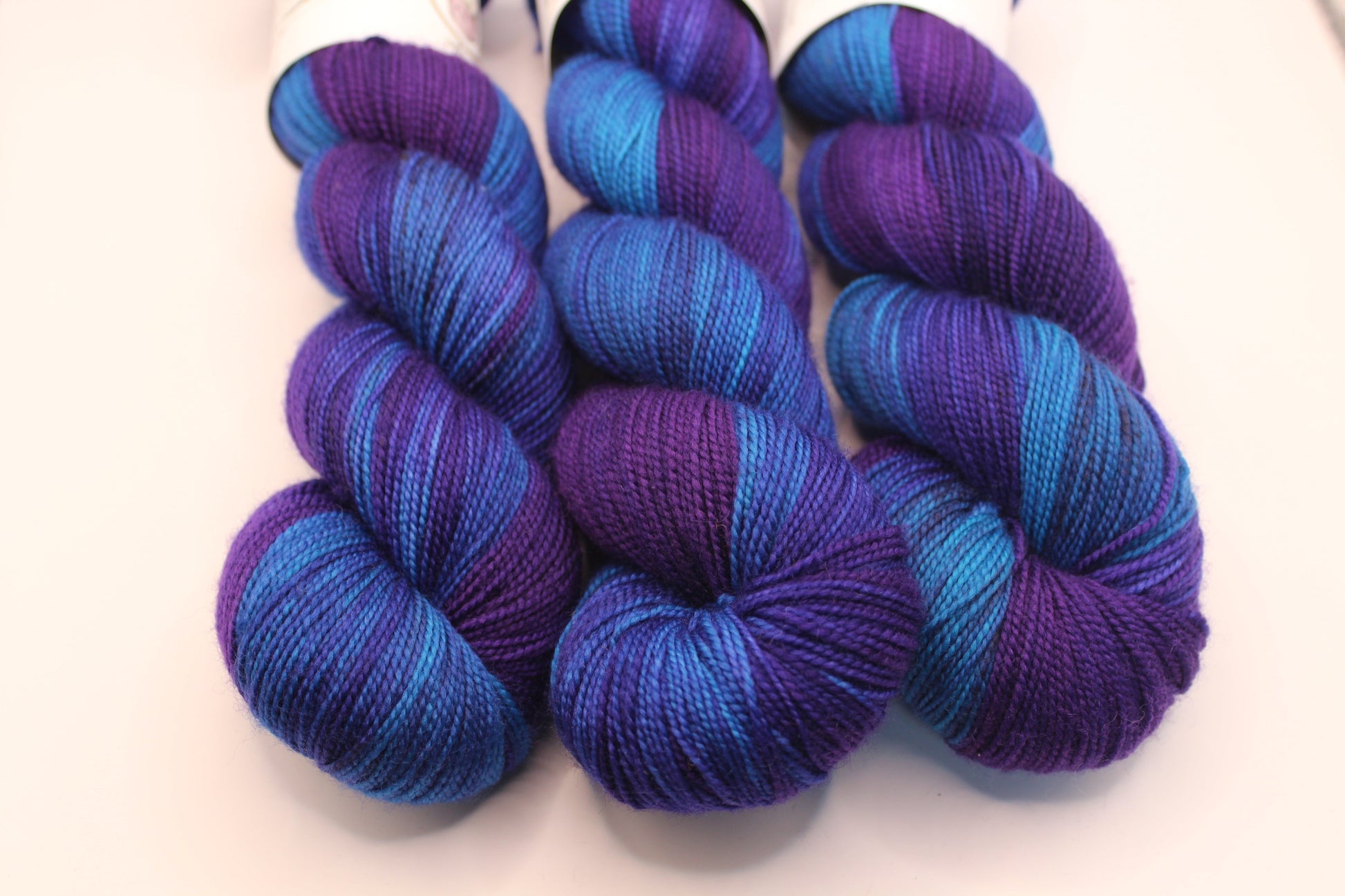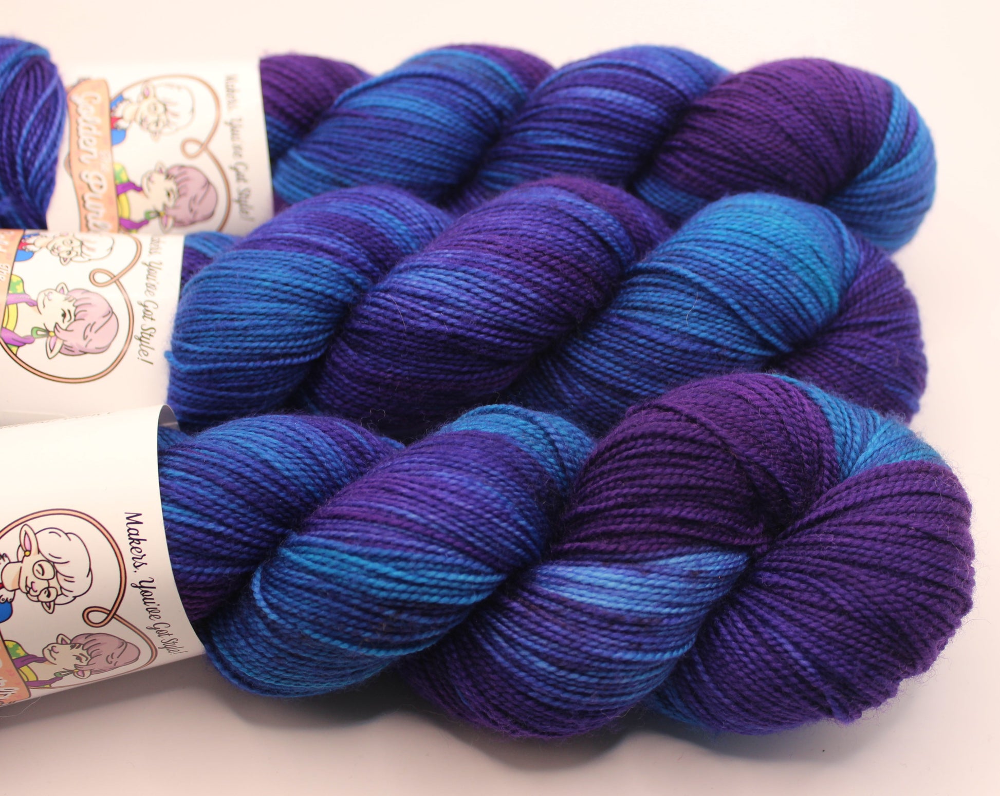 A rich ocean blue and royal purple variegated yarn inspired by the prom that went awry for Dorothy Zbornak (specifically due to Stan...).
